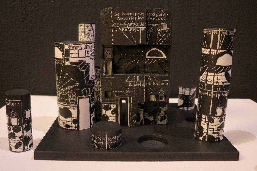 Son 16 piezas las que se presentan como maquetas, fachadas móviles y esculturas impresas en relieve. En ellas aparecen gestos, consignas y grafitis que retratan a una sociedad que resiste en espacios reducidos y entornos complejos. En conjunto, la obra aborda temas como la burbuja inmobiliaria, la degradación ambiental y la desigualdad que atraviesan a las ciudades latinoamericanas.