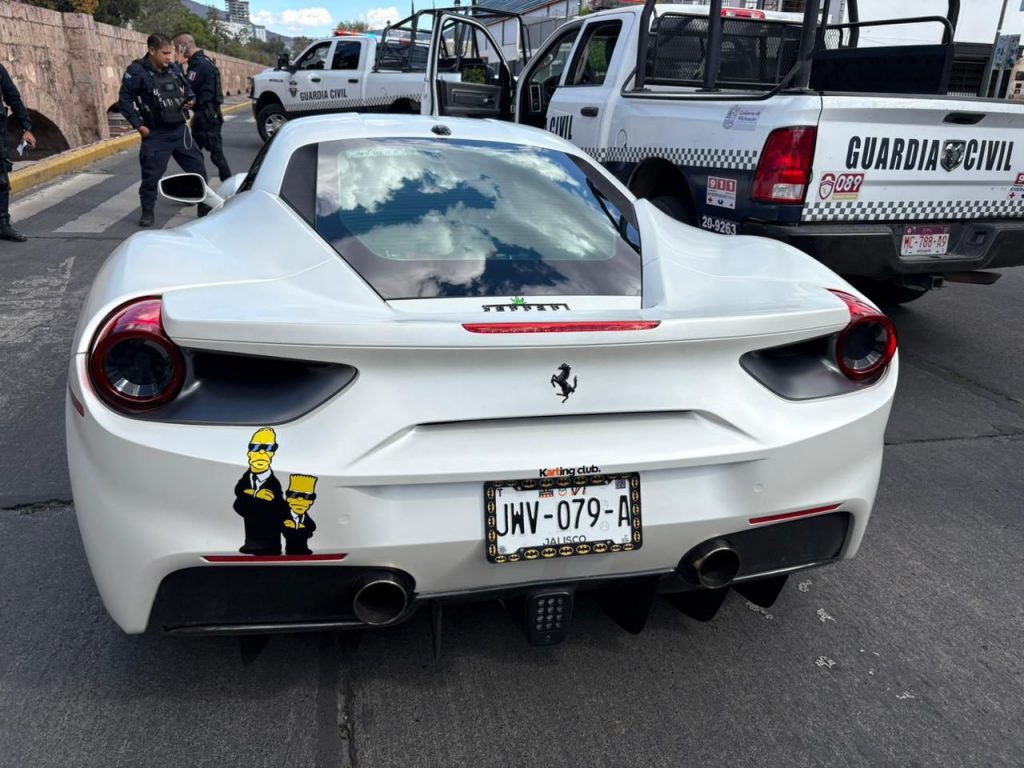 Los hechos se registraron alrededor de las 15:15 horas, cuando personal operativo marcó el alto a un vehículo que circulaba a exceso de velocidad. Al efectuar la inspección correspondiente, se aseguró un automóvil Ferrari 488 GTB, con placas del Estado de México.