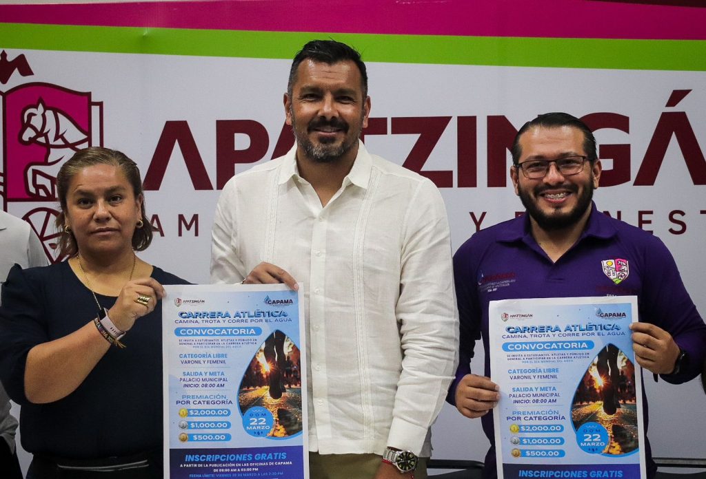 Apatzingán, Michoacán, 11 de marzo de 2026.- Como parte de las estrategias deportivas que emanan del Plan Michoacán por la Paz y la Justicia, más de 400 participantes le darán vida a la carrera atlética “Camina, Trota y Corre por el Agua”, que se celebrará el domingo 22 de marzo a las 8:00 horas en Apatzingán.